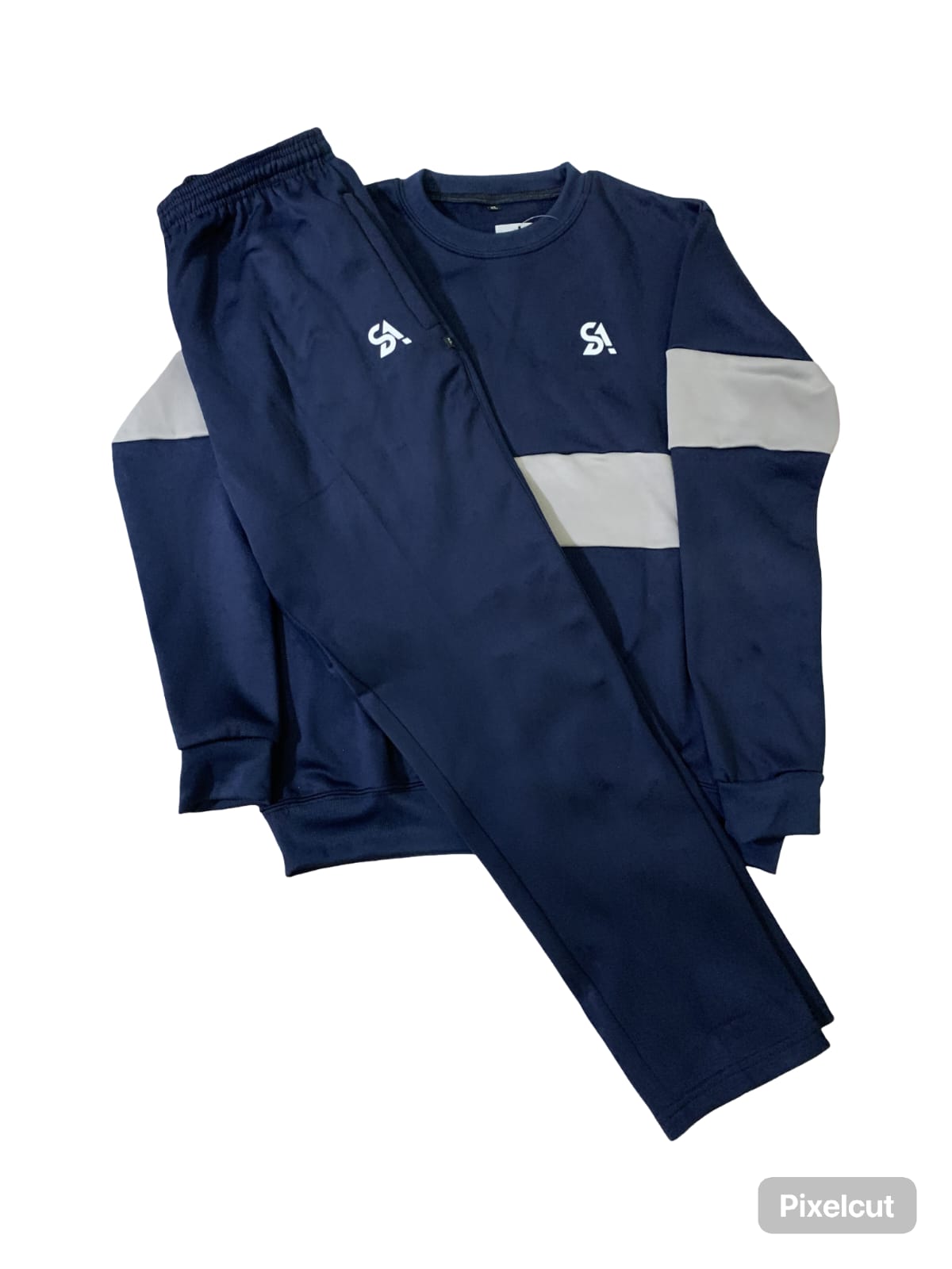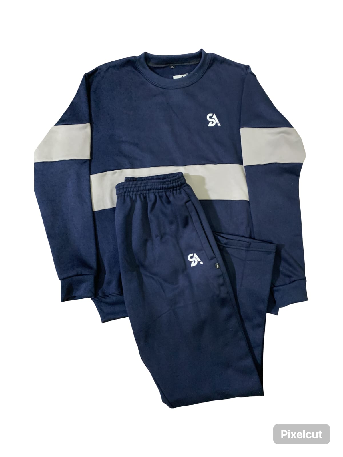 The jacket features a sleek, high-neck zipper design, while the pants offer a comfortable, adjustable waistband with a drawstring for a personalized fit. The SAStore logo adds a touch of exclusivity and modernity to your look.